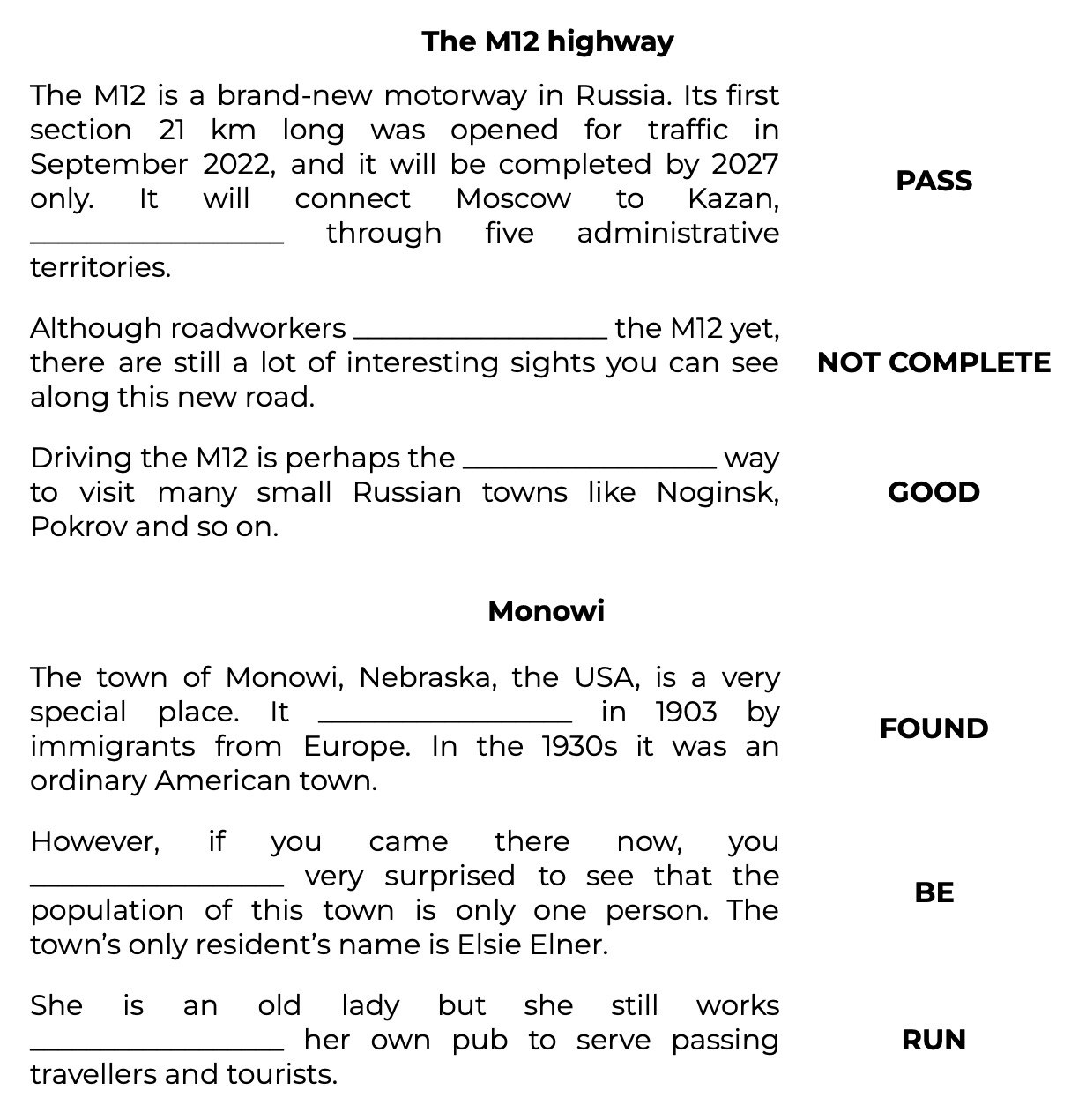 Although roadworkers __________________ the M12 yet, there are still a lot of interesting sights you can see along this new road. (NOT COMPLETE)