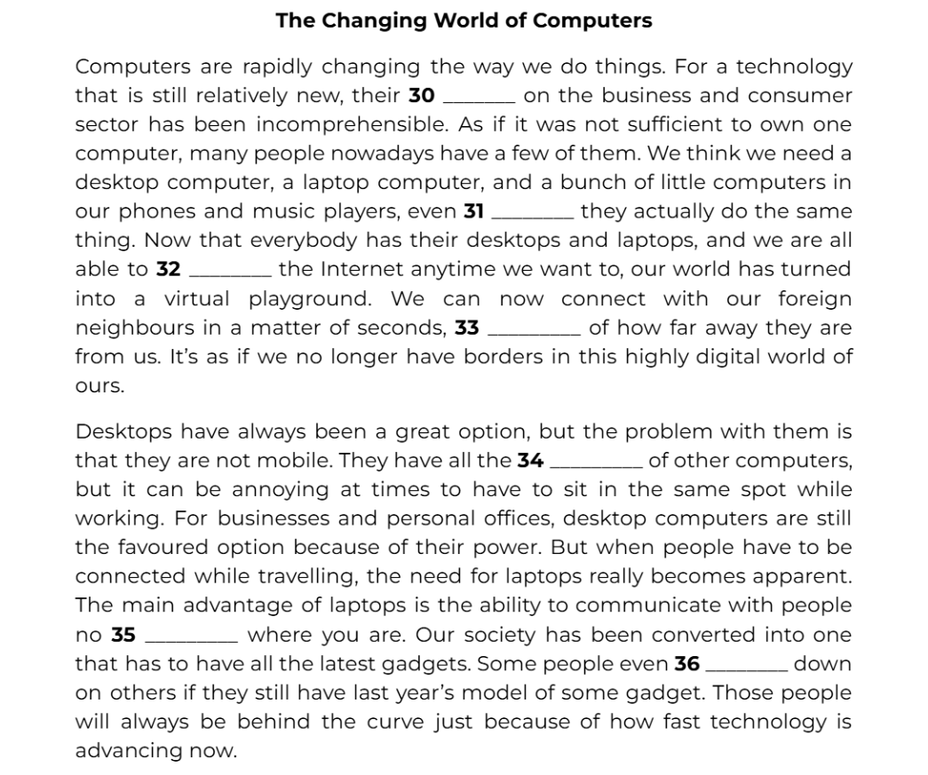 Computers are rapidly changing the way we do things. For a technology that is still relatively new, their 30 _______ on the business and consumer sector has been incomprehensible.