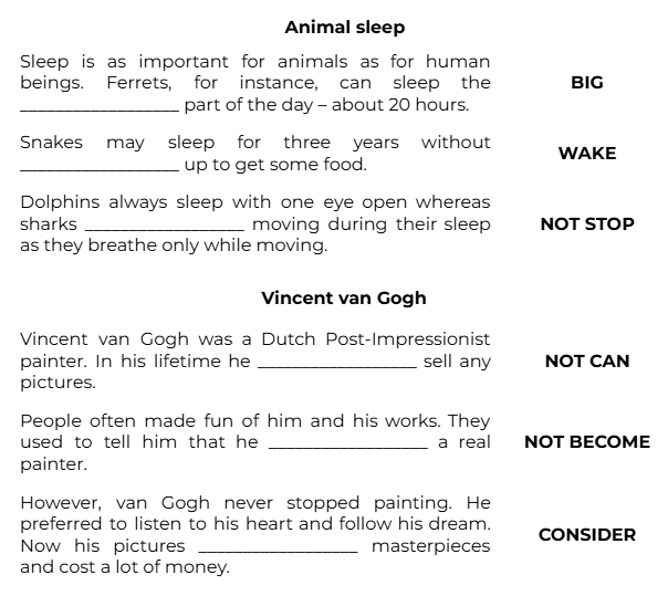 Sleep is as important for animals as for human beings. Ferrets, for instance, can sleep the __________________ part of the day – about 20 hours. (BIG)