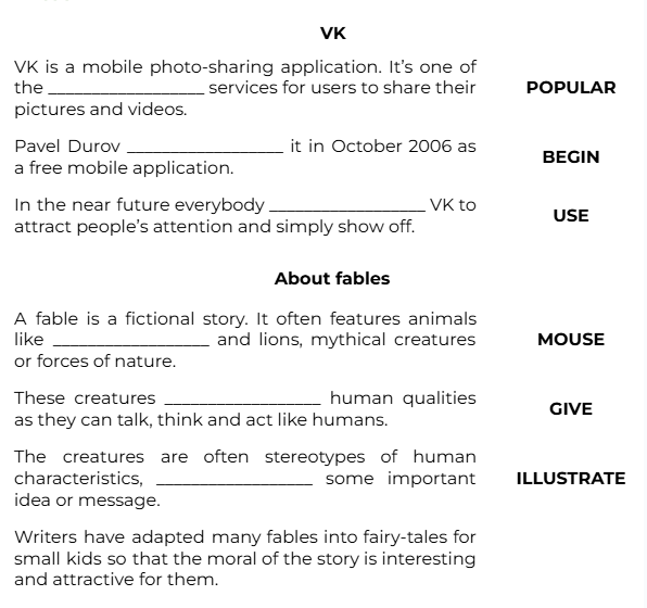 VK is a mobile photo-sharing application. It’s one of the __________________ services for users to share their pictures and videos. (POPULAR)