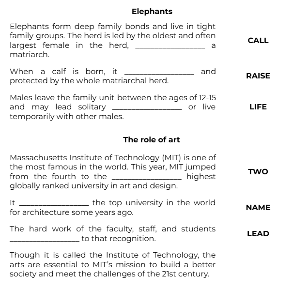 Elephants form deep family bonds and live in tight family groups. The herd is led by the oldest and often largest female in the herd, __________________ a matriarch. (CALL)