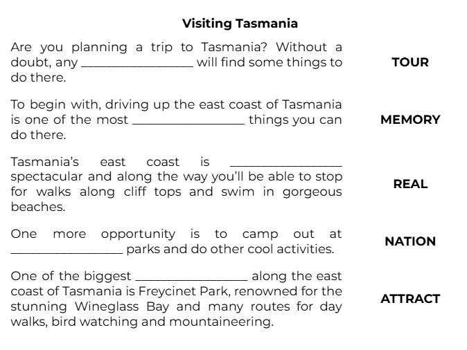 Are you planning a trip to Tasmania? Without a doubt, any __________________ will find some things to do there. (TOUR)