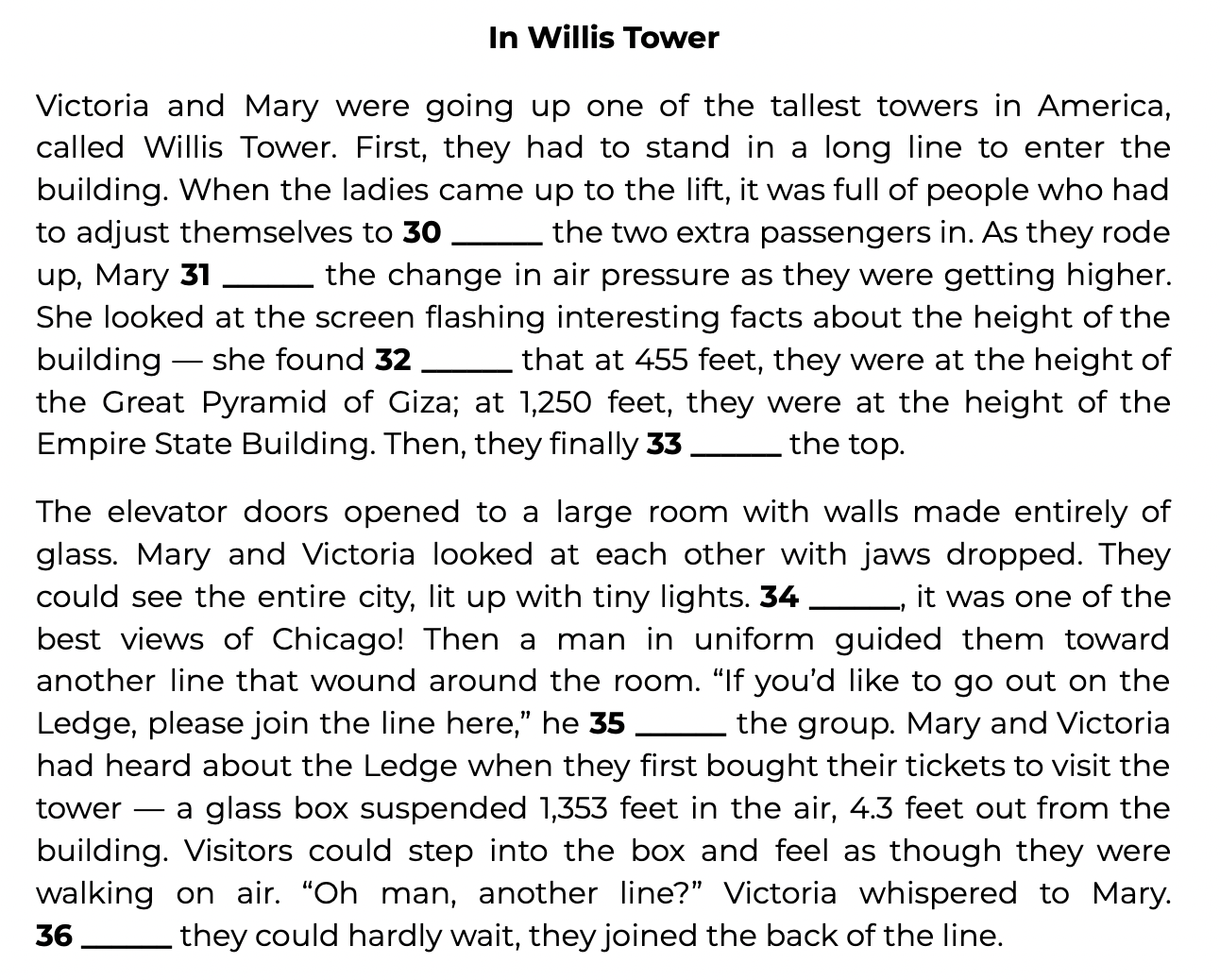 “If you’d like to go out on the Ledge, please join the line here,” he 35 ______ the group.