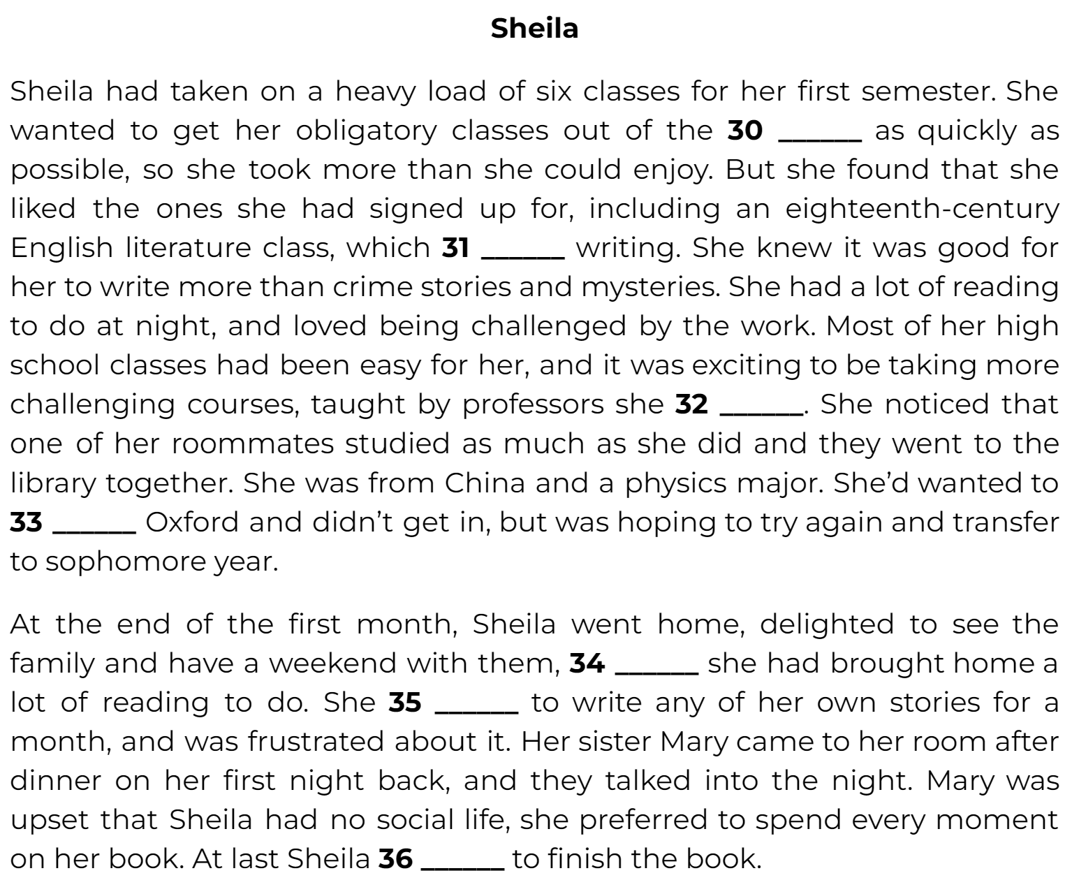 Mary was upset that Sheila had no social life, she preferred to spend every moment on her book. At last Sheila 36 ______ to finish the book.