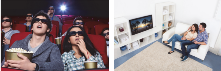 mention the advantages (1–2) of the two ways of watching films;