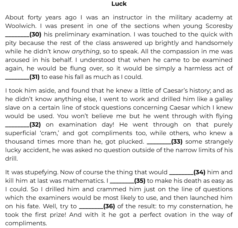 Прочитайте текст с пропусками, обозначенными номерами 30-36. Эти номера соответствуют заданиям 30-36, в которых представлены возможные варианты ответов. Отметьте цифру 1, 2, 3 или 4, соответствующую выбранному Вами варианту ответа.