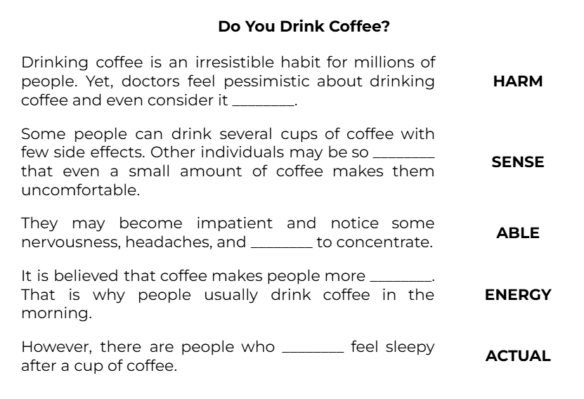Drinking coffee is an irresistible habit for millions of people. Yet, doctors feel pessimistic about drinking coffee and even consider it ________. (HARM)