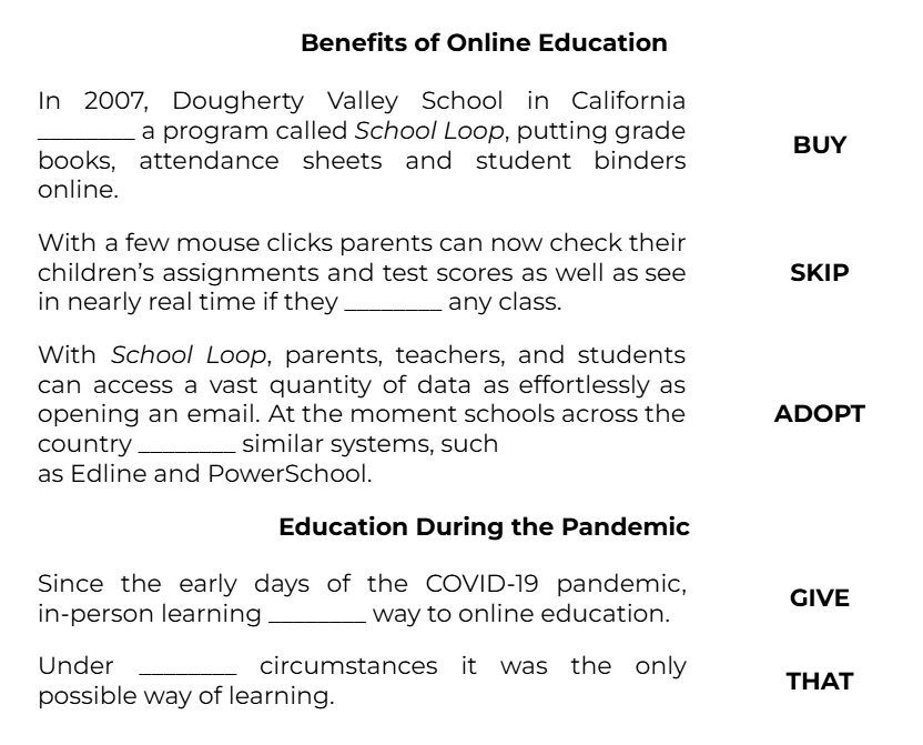 In 2007, Dougherty Valley School in California ________ a program called School Loop, putting grade books, attendance sheets and student binders online. (BUY)