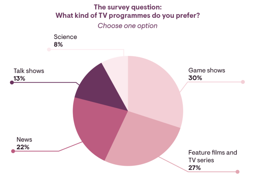 38.2. Imagine that you are doing a project on the most popular kind of TV programmes in Zetland. You have found some data on the subject — the results of a survey (see the pie chart below).