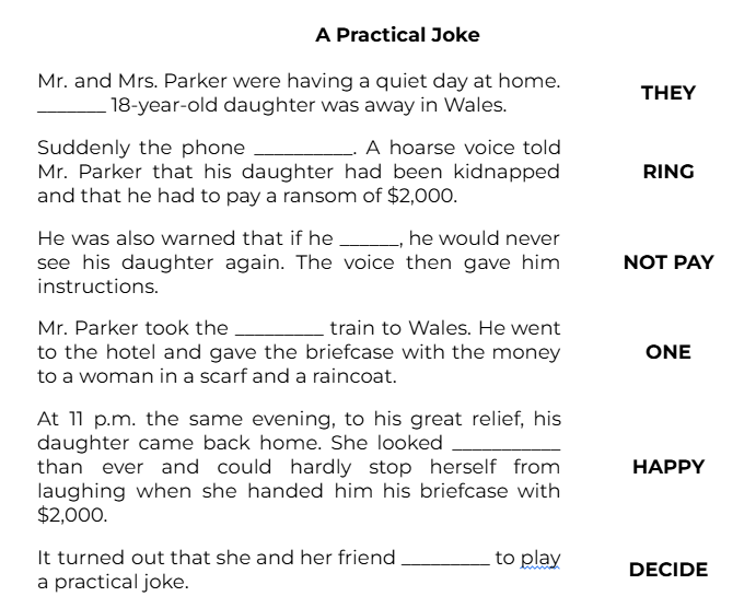 Mr. and Mrs. Parker were having a quiet day at home. _______ 18-year-old daughter was away in Wales. (THEY)