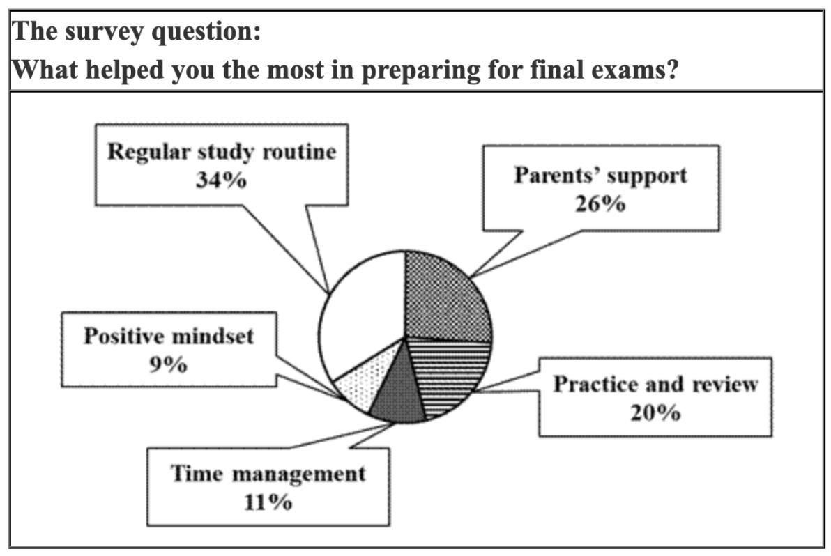 38.2 Imagine that you are doing a project on Zetland teenagers’ preparation for final exams. You have found some data on the subject — the results of a survey (see the pie chart below).