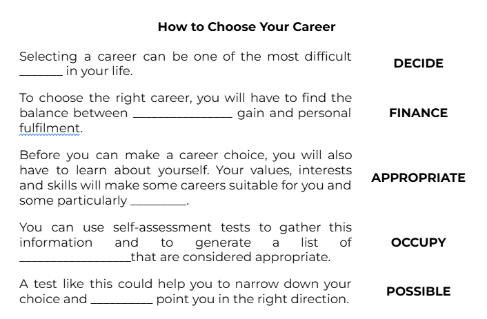To choose the right career, you will have to find the balance between ________________ gain and personal fulfilment. (FINANCE)