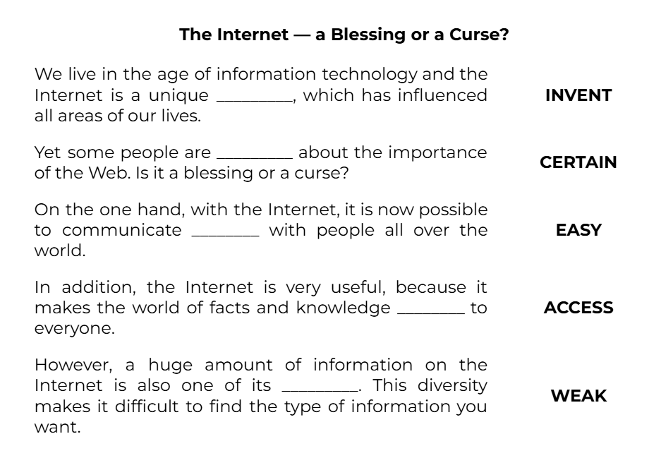 We live in the age of information technology and the Internet is a unique _________, which has influenced all areas of our lives. (INVENT)