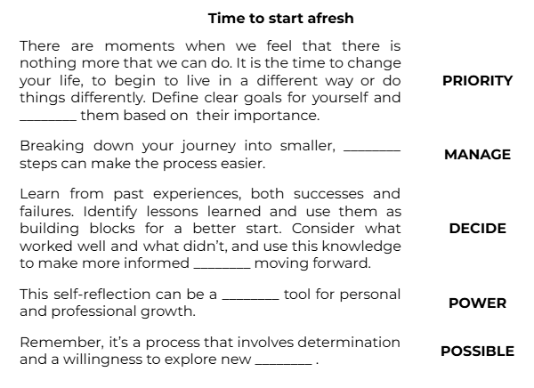There are moments when we feel that there is nothing more that we can do. It is the time to change your life, to begin to live in a different way or do things differently. Define clear goals for yourself and ________ them based on their importance. (PRIORITY)