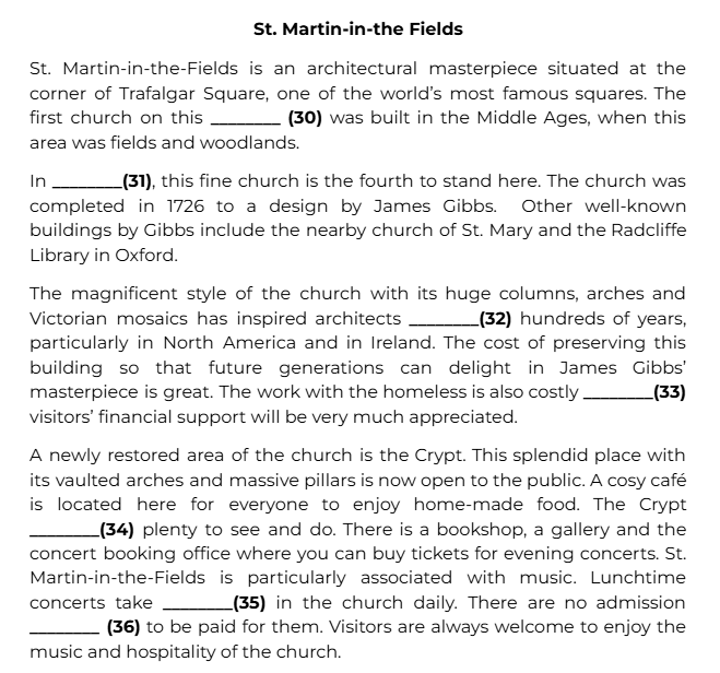 In ________(31), this fine church is the fourth to stand here. The church was completed in 1726 to a design by James Gibbs.