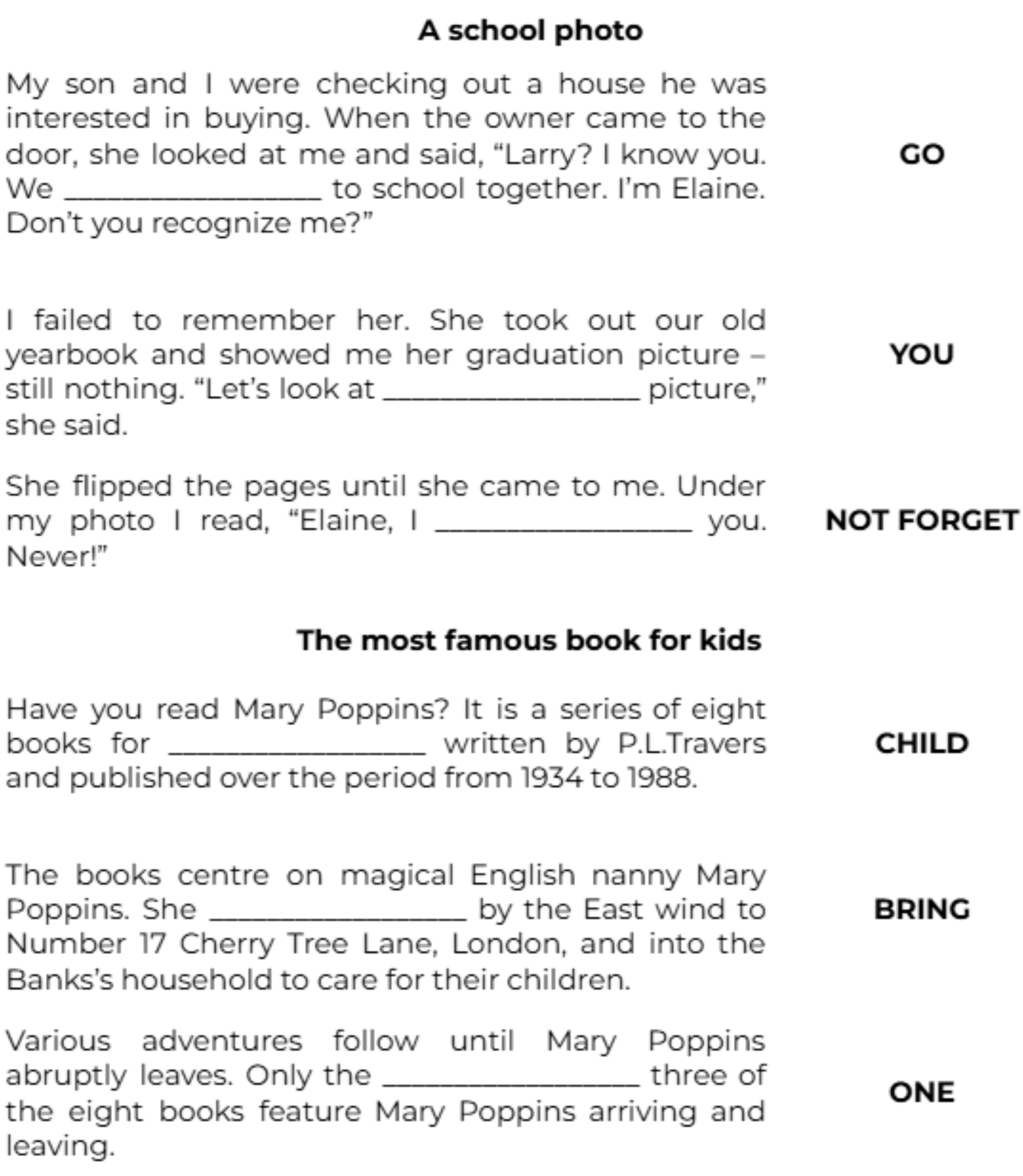 Have you read Mary Poppins? It is a series of eight books for __________________ written by P.L.Travers and published over the period from 1934 to 1988. (CHILD)