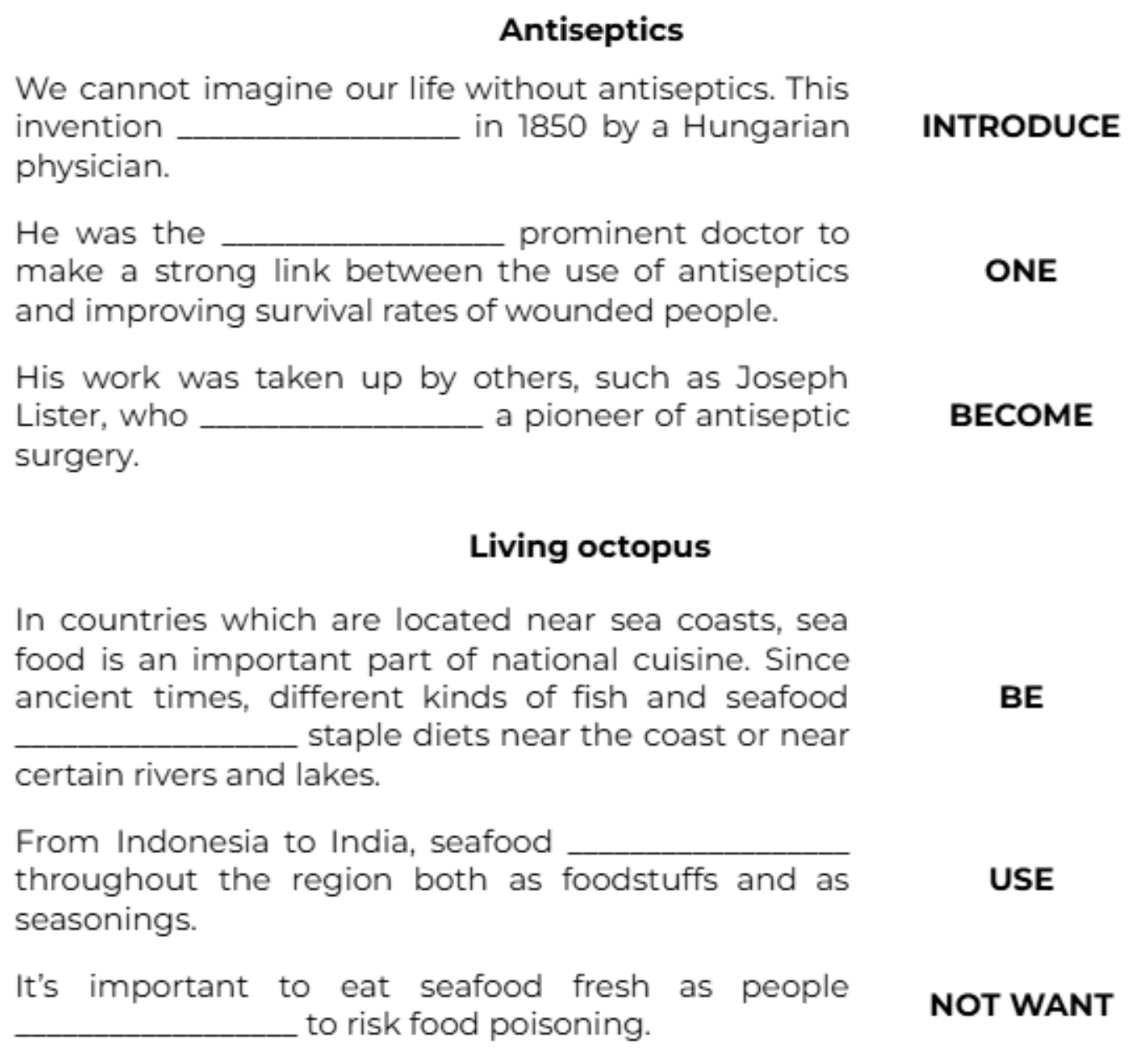 We cannot imagine our life without antiseptics. This invention __________________ in 1850 by a Hungarian physician. (INTRODUCE)