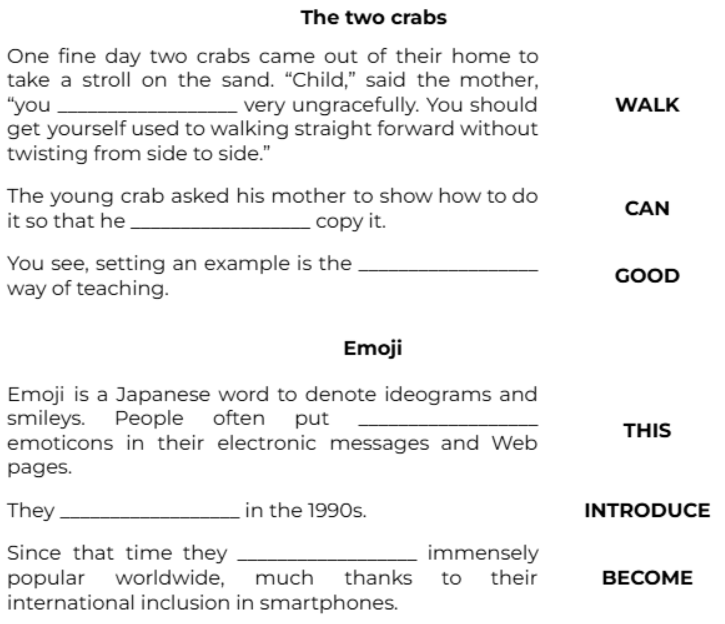 One fine day two crabs came out of their home to take a stroll on the sand. “Child,” said the mother, “you __________________ very ungracefully. You should get yourself used to walking straight forward without twisting from side to side.” (WALK)
