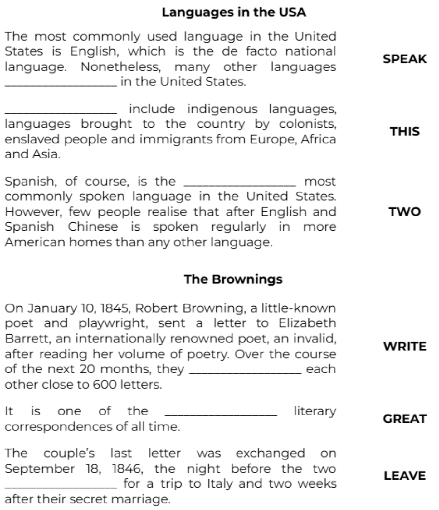 On January 10, 1845, Robert Browning, a little-known poet and playwright, sent a letter to Elizabeth Barrett, an internationally renowned poet, an invalid, after reading her volume of poetry. Over the course of the next 20 months, they __________________ each other close to 600 letters. (WRITE)
