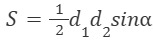 , где d — длина диагонали, α — угол между диагоналями. Пользуясь этой формулой, найдите площадь S, если d=6 и sinα=