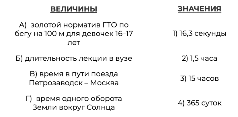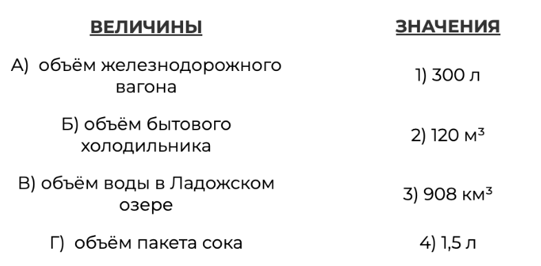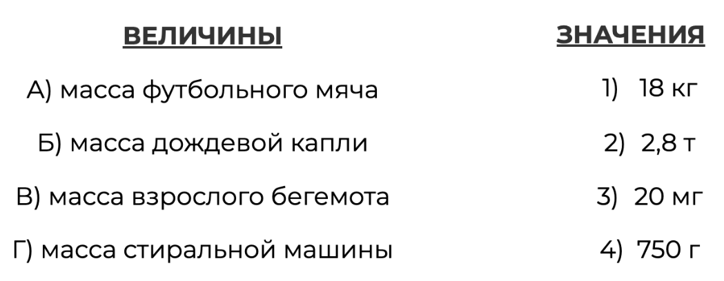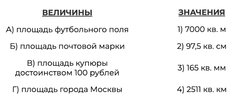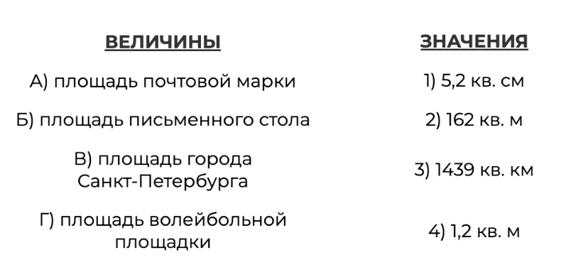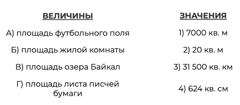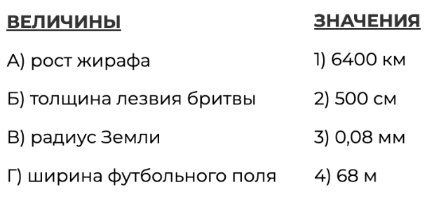 В таблице под каждой буквой, соответствующей величине, укажите номер её возможного значения.
