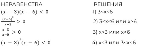 Каждому из четырёх неравенств в левом столбце соответствует одно из решений в правом столбце. Установите соответствие между неравенствами и их решениями.