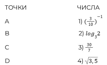 В таблице для каждой точки укажите номер соответствующего числа.