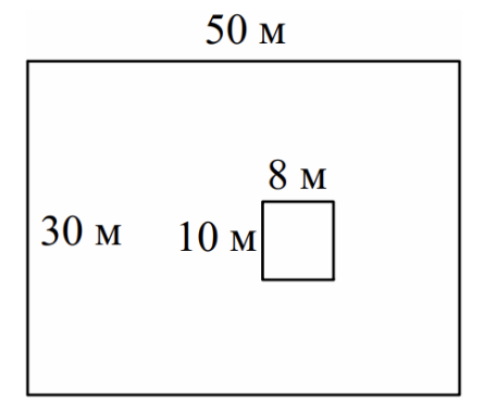 Дачный участок имеет форму прямоугольника, стороны которого равны 50 м и 30 м. Дом, расположенный на участке, на плане также имеет форму прямоугольника, стороны которого равны 8 м и 10 м. Найдите площадь оставшейся части участка, не занятой домом. Ответ дайте в квадратных метрах.