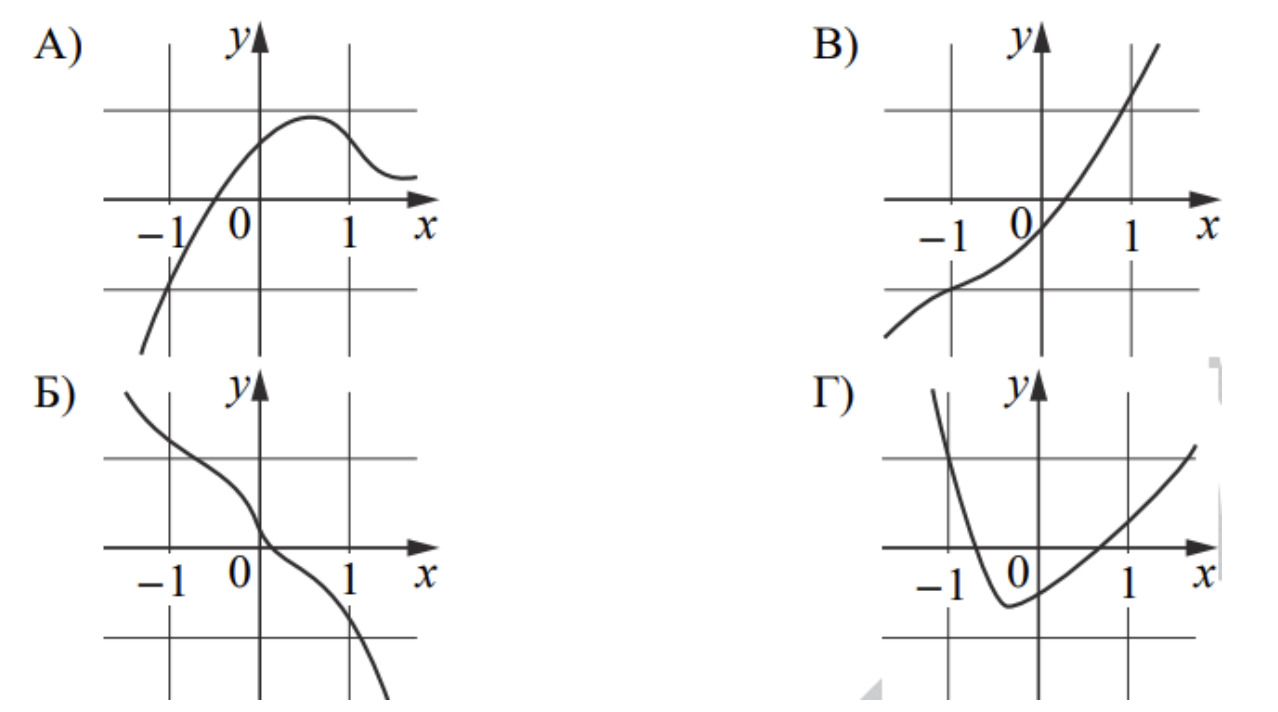 Установите соответствие между графиками функций и характеристиками этих функций на отрезке [−1; 1 .]
