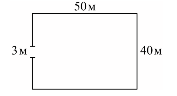 Участок земли имеет прямоугольную форму. Стороны прямоугольника равны 40 м и 50 м. Найдите длину забора (в метрах), которым нужно огородить участок, предусмотрев проезд шириной 3 м.