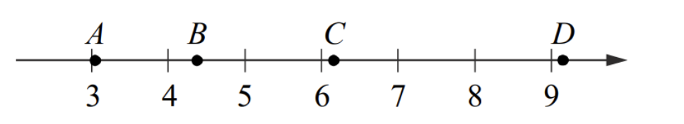 На координатной прямой отмечены точки A, B, C и D.