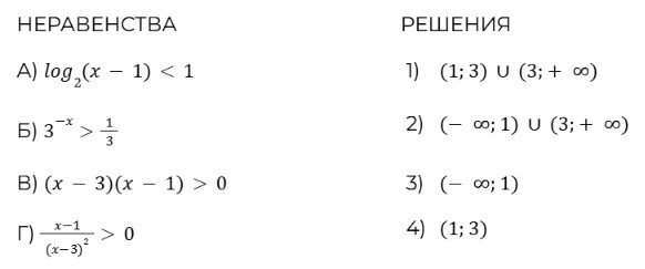 Каждому из четырёх неравенств в левом столбце соответствует одно из решений в правом столбце. Установите соответствие между неравенствами и их решениями.