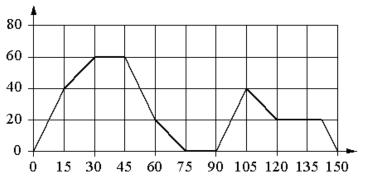 Пользуясь графиком, поставьте в соответствие каждому интервалу времени характеристику движения автомобиля на этом интервале.