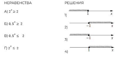 Каждому из четырёх неравенств в левом столбце соответствует одно из решений в правом столбце. Установите соответствие между неравенствами и их решениями.