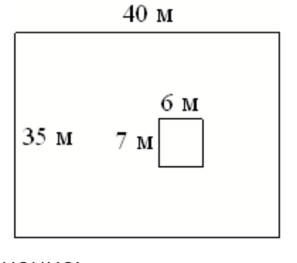 Дачный участок имеет форму прямоугольника, стороны которого равны 35 м и 40 м. Дом, расположенный на участке, на плане также имеет форму прямоугольника, стороны которого равны 7 м и 6 м. Найдите площадь оставшейся части участка, не занятой домом. Ответ дайте в квадратных метрах.