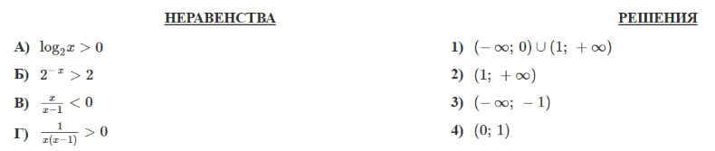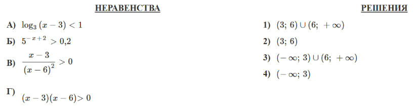 из решений в правом столбце. Установите соответствие между неравенствами и их решениями.