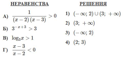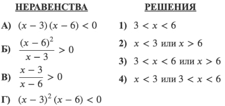Каждому из четырёх неравенств в левом столбце соответствует одно из решений в правом столбце. Установите соответствие между неравенствами и их решениями.