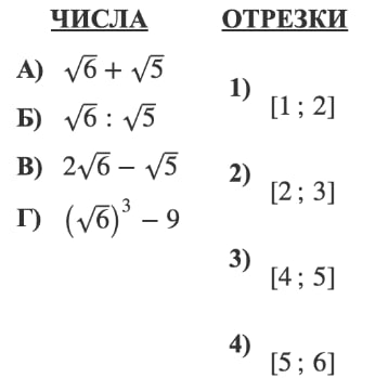 Каждому из четырёх чисел в левом столбце соответствует отрезок, которому оно принадлежит. Установите соответствие между числами и отрезками из правого столбца.