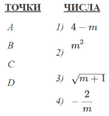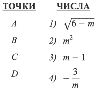 На координатной прямой отмечено число m и точки A, B, C и D.