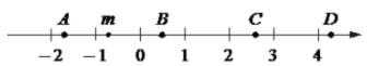 На координатной прямой отмечено число 𝑚 и точки 𝐴, 𝐵, 𝐶 и 𝐷.