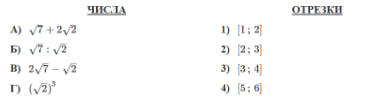 Каждому из четырёх чисел в левом столбце соответствует отрезок, которому оно принадлежит. Установите соответствие между числами и отрезками из правого столбца.