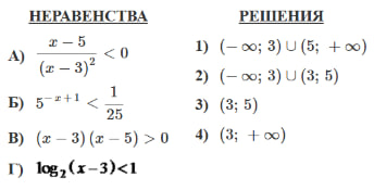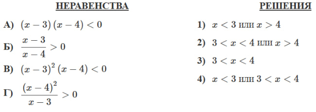 Каждому из четырёх неравенств в левом столбце соответствует одно из решений в правом столбце. Установите соответствие между неравенствами и их решениями.