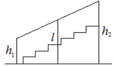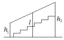 Перила лестницы дачного дома для надёжности укреплены посередине вертикальным столбом. Найдите высоту l этого столба, если наименьшая высота h1 перил равна 1,7 м, а наибольшая высота h2 равна 2,7 м. Ответ дайте в метрах.
