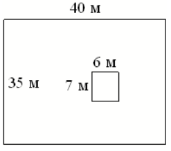 Дачный участок имеет форму прямоугольника, стороны которого равны 35 м и 40 м. Дом, расположенный на участке, на плане также имеет форму прямоугольника, стороны которого равны 7 м и 6 м. Найдите площадь оставшейся части участка, не занятой домом. Ответ дайте в квадратных метрах.