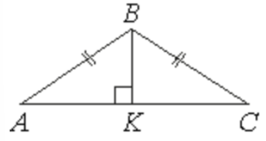 В равнобедренном треугольнике 𝐴𝐵𝐶 угол 𝐴𝐵𝐶 равен 120°. Высота 𝐵𝐾, проведённая к основанию, равна 56. Найдите боковую сторону 𝐴𝐵.