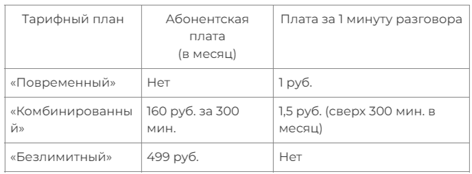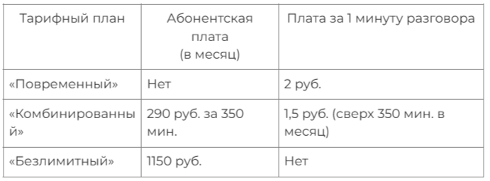 Телефонная компания предоставляет на выбор три тарифных плана.