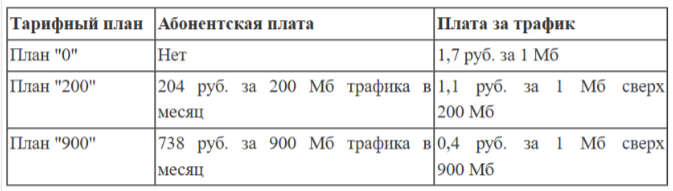 Пользователь предполагает, что его трафик составит 700 Мб в месяц, и исходя из этого выбирает наиболее дешёвый тарифный план. Сколько рублей должен будет заплатить пользователь за месяц, если его трафик действительно будет равен 700 Мб?