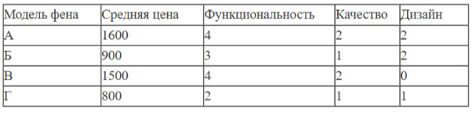 Найдите наименьший рейтинг фена из представленных в таблице моделей.