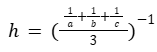 Среднее гармоническое трёх чисел 𝑎, 𝑏 и 𝑐 вычисляется по формуле