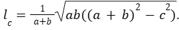 Длина биссектрисы lc, проведённой к стороне c треугольника со сторонами a, b и c, вычисляется по формуле